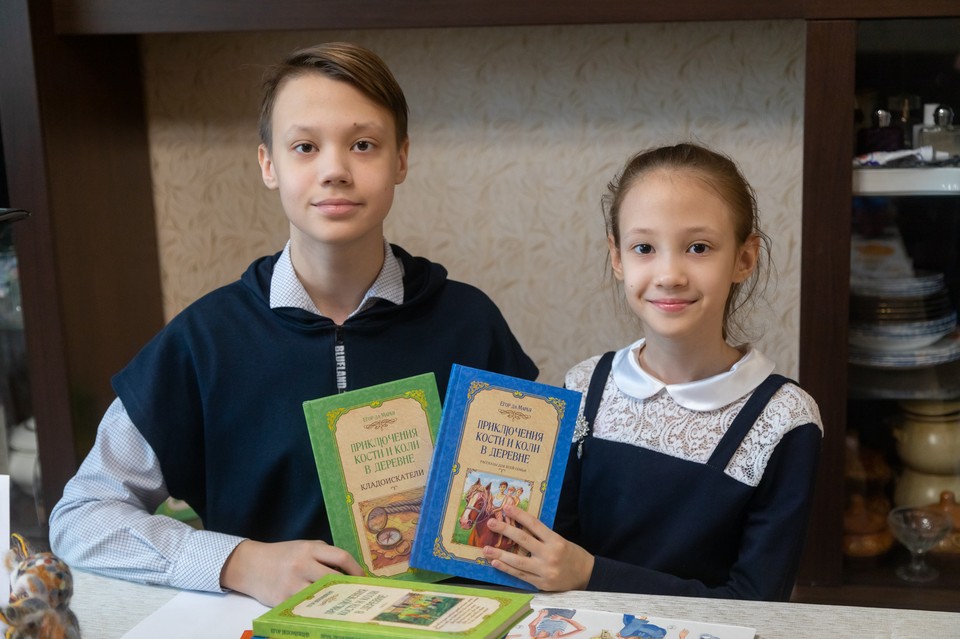 — У нас были другие цели, мы раздавали нашу книгу друзьям, родственникам, подарили 24 школе, где учатся Егор с Марией. Учительнице Маши она настолько понравилась, что она даже провела по ней несколько занятий. А потом решили поучаствовать в ярмарке КРЯКК (Красноярской ярмарке книжной культуры – прим.ред.) Там у нас был стилизованный павильон под русскую народную избушку, мы были в разных костюмах. Наши книги имели успех – получили много восторженных отзывов. И ими даже заинтересовались несколько компаний. Но мы как-то не планировали «Приключения Коли и Кости» изначально продавать, переводить это в такой масштаб… Но решили попробовать и согласились на предложение «Академкниги». Теперь нашу книгу в двух филиалах магазина. Мы не ожидали, что она так понравится читателям. В планах у Егора и Маши, она недавно тоже начала открывать в себе писательский талант, издать еще несколько книг. Они сейчас активно пишут истории.