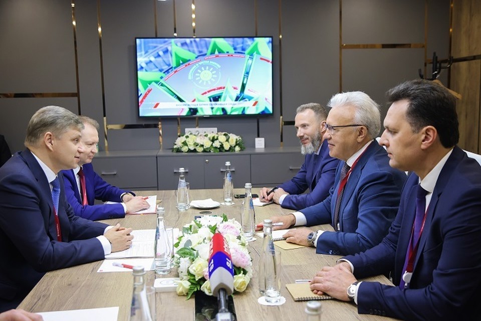 Перспективы развития железнодорожной инфраструктуры в крае обсудили во время Петербургского международного экономического форума губернатор Красноярского края Александр Усс и генеральный директор — председатель правления ОАО «РЖД» Олег Белозёров.