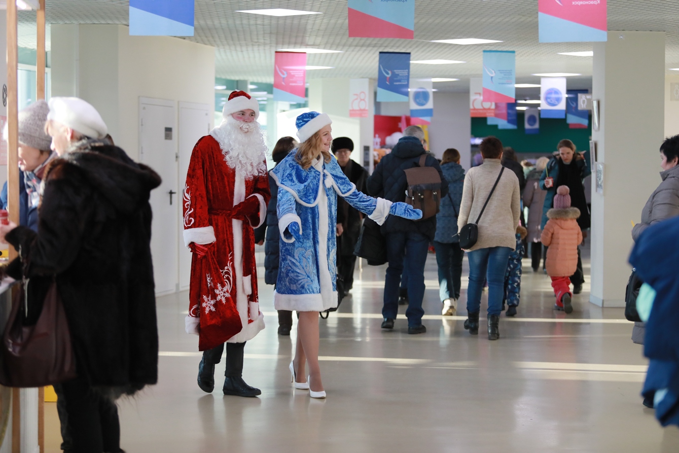 И немного про развлечения для болельщиков. Можно побывать на выставке об истории фигурного катания Красноярского края, сфотографироваться в фотозонах, их несколько. Плюс прекрасный вид из окон на одну из величайших рек мира, Енисей-батюшку.