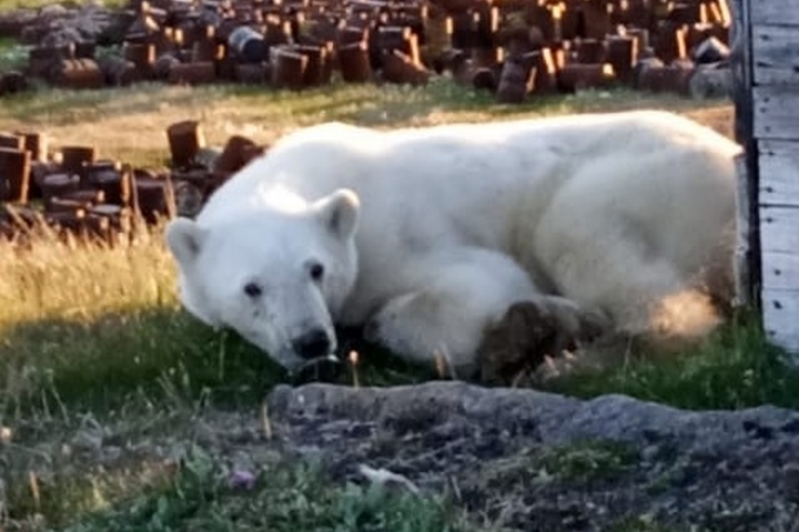 — Медведь появился два-три три назад. Место, куда он пришел, находится примерно в пяти километрах от самого Диксона, на полярной станции, где у нас работают метеорологи. Очевидно, нашел банку из-под сгущенки, вылизывал ее, засунул язык, а обратно не смог вытащить. Сейчас он голодный, его мучает жажда, потому что пить он не может. Медведь уже достаточно взрослый, хотя молодой. Как правило, именно молодые очень любопытные и приходят посмотреть на людей, им интересно. Еще и кушать хочется – идут на запах еды, в надежде поживиться съестным. Потому что в летнее время белые медведи голодают, их основная пища – тюлени, а добыть его можно либо с берега, либо со льда. Ждем специалистов, которые освободят его.