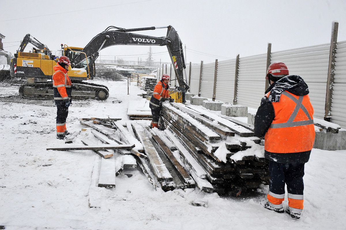 На возведение и оборудование поликлиники компания «Норникель» выделяет более 2 миллиардов рублей. Поскольку в Талнахе из-за густой застройки сложно было выделить пустой земельный участок, к выбору места подходили основательно. Остановились на территории между улицами Спортивной и Пионерской, там раньше стояли четыре здания, но они пришли в негодность. Их в свое время снесли, а ростверки (верхняя часть свайного фундамента, распределяющая нагрузку от несущих элементов здания или сооружения) остались. Этими-то ростверками сейчас и занимаются рабочие. Их задача выкорчевать и вывезти отсюда все, чтобы передать далее ровную чистую площадку. Гудят бульдозеры, экскаваторы, самосвалы, весь мусор, куски бетона и арматуру, вывозят на специальные промышленные отвалы.
