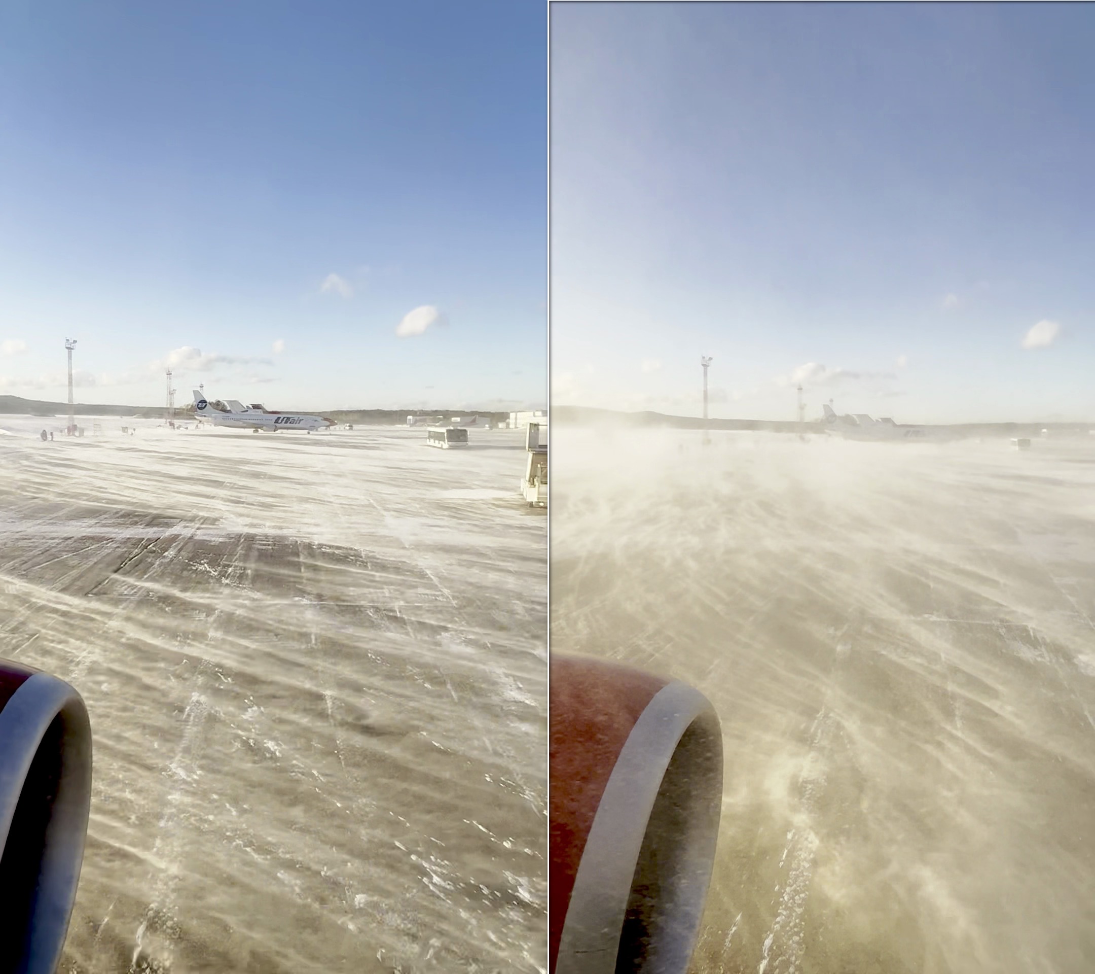Из-за сильного ветра самолет в аэропорту Красноярска приземлился только с третьего раза