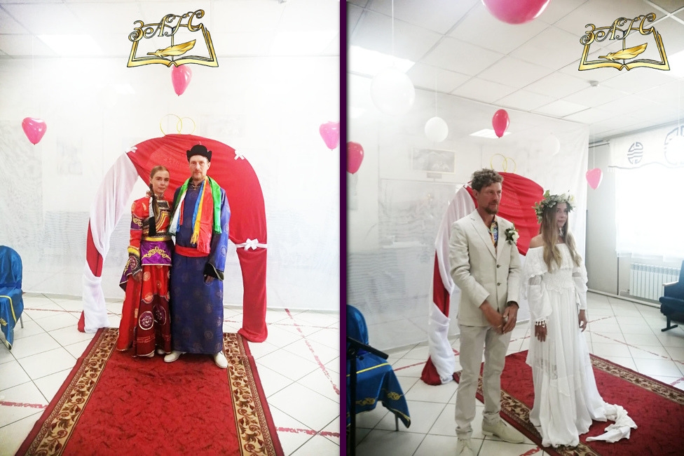 Не совсем обычная свадьба прошла в Чаа-Хольском районе Республики Тыва. Сотрудники местного ЗАГСа пошли навстречу пожеланиям молодоженов. Он – Анатолий Семенов, научный сотрудник ИИМК РАН из Санкт-Петербурга. Она – Валерия Денисенко, научный сотрудник ИИМК РАН из Новосибирска. Пара решила связать себя узами брака, но так, чтобы запомнить на всю жизнь – по тувинскому национальному обычаю.