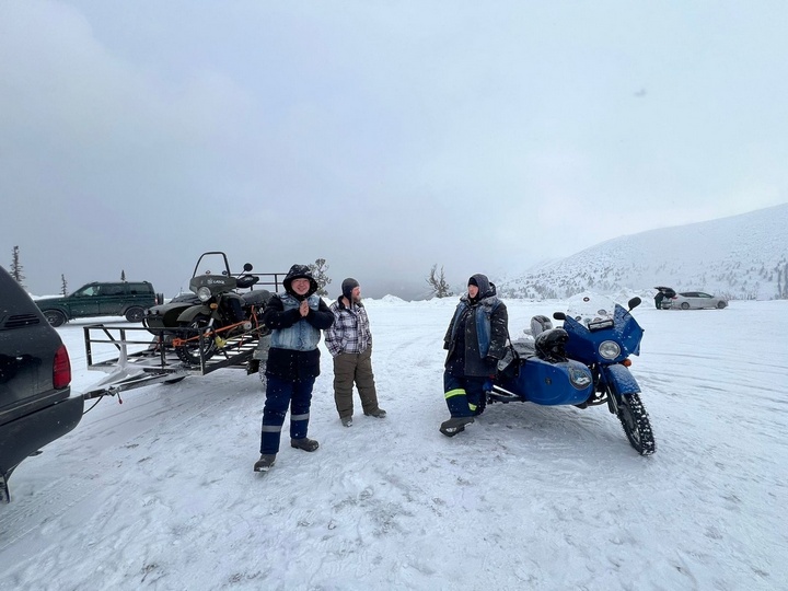 Участвовали в заезде члены двух мотоклубов. «Ангелы Ночи» из Саяногорска, и «Юрточные» из Кызыла. По два человека от каждого коллектива. В путь они выдвинулись на советских «Уралах», причем с люльками. Пока один рулит, второй отдыхает. Предварительно пришлось утеплить мотоциклы, да и самим одеться как можно теплее.