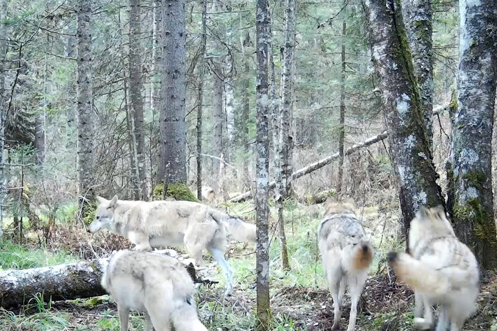 В фотоловушку национального парка «Шушенский бор» попала крупная стая волков