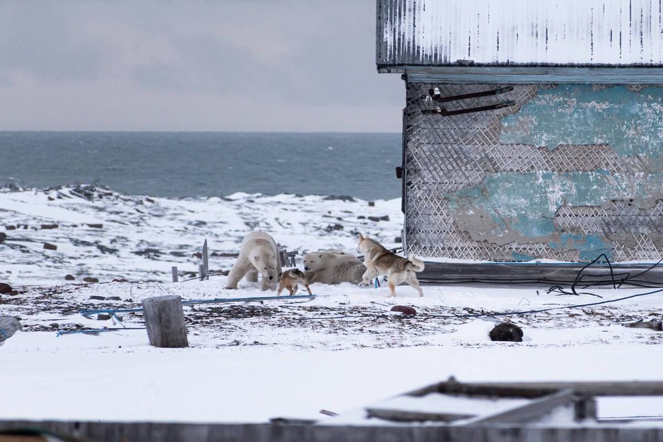 В этом суровом мире счет порой идет на секунды. Обычная прогулка может превратиться в экстремальное приключение, если из-за угла появится белый мишка. Эти краснокнижные великаны — полноправные хозяева здешних мест, и причинять им вред строго запрещено. Поэтому, завидев медведя, немедленно прятаться в здание или забраться как можно выше. За кадрами одного из многих сделанных смельчаками видео во время визитов хищников можно услышать: