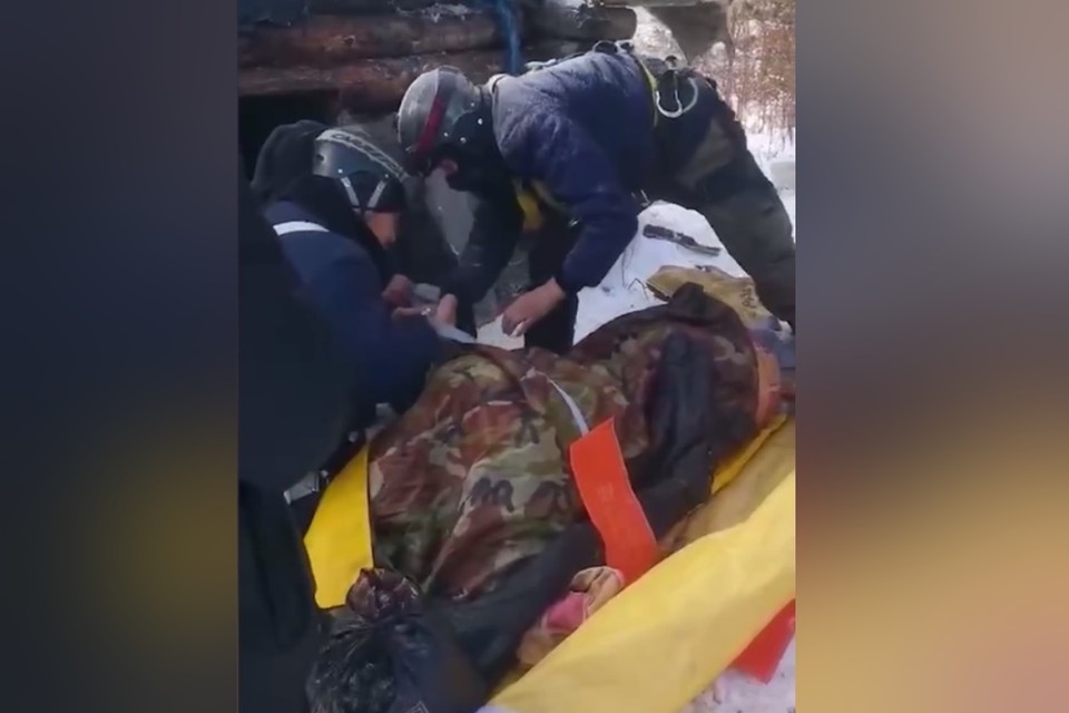 В рейс вылетели врачи, спасатели МЧС и местная команда с поисково-спасательной базы. Поскольку сесть в тайге было невозможно, спасатели провернули беспарашютное десантирование – высадились с вертолета на лебедке. Так же, с помощью троса, в вертолет подняли пострадавшего мужчину.