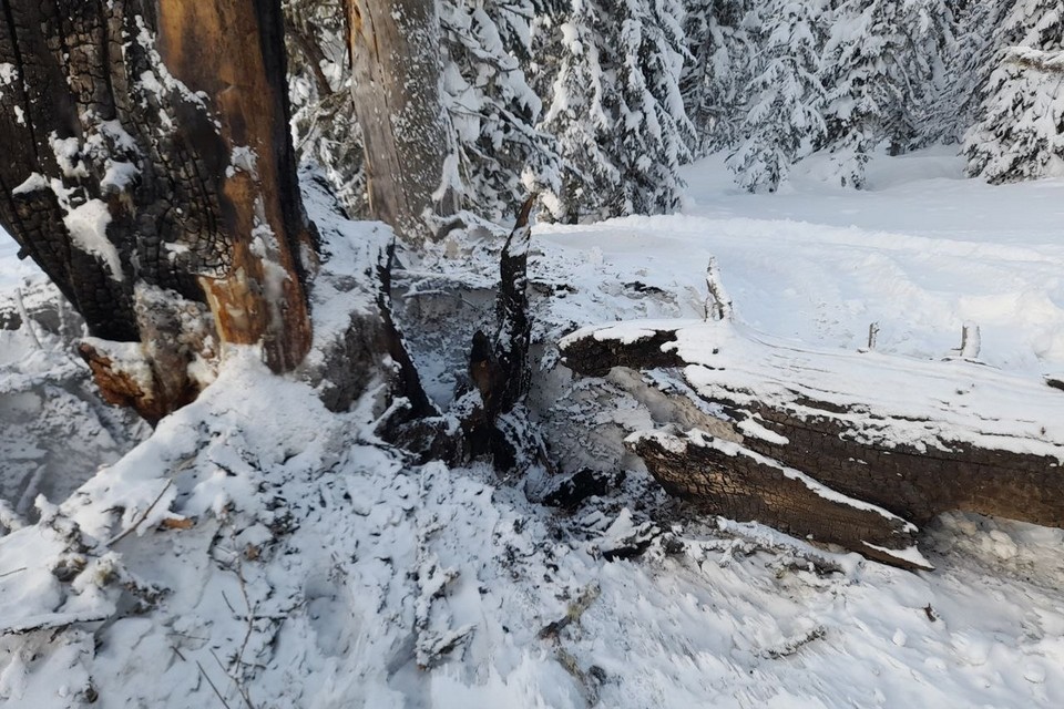В природном парке «Ергаки» хулиганы-снегоходчики подожгли кедр