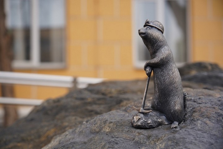 — С каждым сусликом я приобретаю опыт и стараюсь делать историю. Гоша стоит не просто на камне — это золотоносная руда. А еще в этом слитке маленький алмазик – присмотритесь! Гоша подсказывает нам: что бы вы ни нашли, старайтесь и ищите дальше. Возможно, вы найдете что-то особенное, — рассказал скульптор Андрей Кошелев.