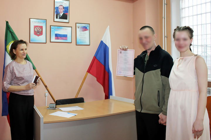 Сотрудники абаканского ЗАГСа и руководство колонии устроили выездную регистрацию. Торжество состоялось. После бракосочетания паре предоставили возможность побыть вместе три дня в комнате длительных свиданий, находящейся в учреждении.